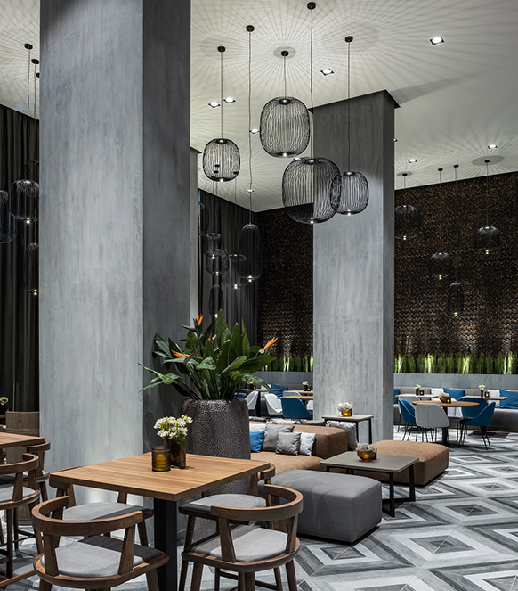 阿爾巴沙萬怡酒店于2018年10月開業,是阿拉伯聯合酋長國的一家酒店VI設計公司。酒店的內部裝飾深深植根于意大利風格,裝飾材料,高貴的木材,精美的大理石和精致的細節展現出嚴謹而現代的主題風格。全日制餐廳位于大廳旁邊,由金屬條而不是墻壁隔開,旨在鼓勵人們在兩個空間之間自由流動。繪制假天花板和地板的線也標記了這種流動。一樓還設有雪茄吧餐廳,不僅是用餐的地方,而且還得益于經過深思熟慮的布局,定制的家具和諸如混凝土,雪茄。臥室配有定制設計的家具,精致的細節和精致的裝飾讓您住得舒適。在屋頂樓層,客人可以享受水療護理,也可以參加設備齊全的健身中心。酒店以帶室外游泳池和豪華酒吧的屋頂為中心。酒店為客戶提供了在配備先進設備的會議室舉辦活動的可能性.